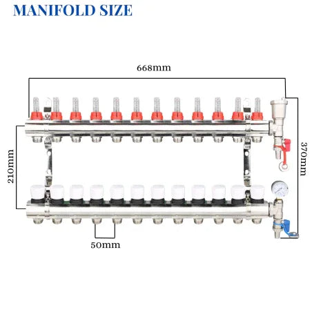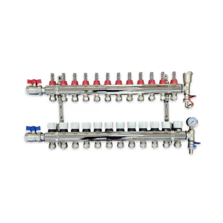 Nasz mosiężny rozdzielacz ogrzewania podłogowego zawiera: