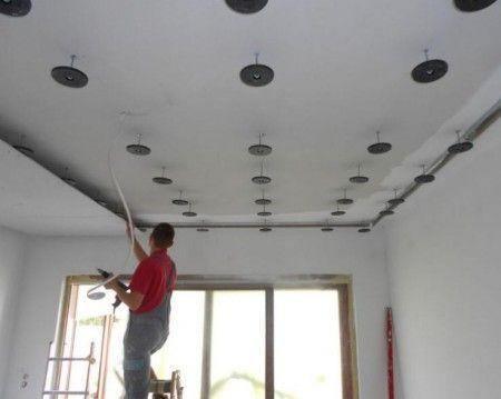 Quick progress of work – fixing full-size boards is limited to two stages: drilling holes where the anchors will be inserted and screwing plasterboards to the discs with steel screws.