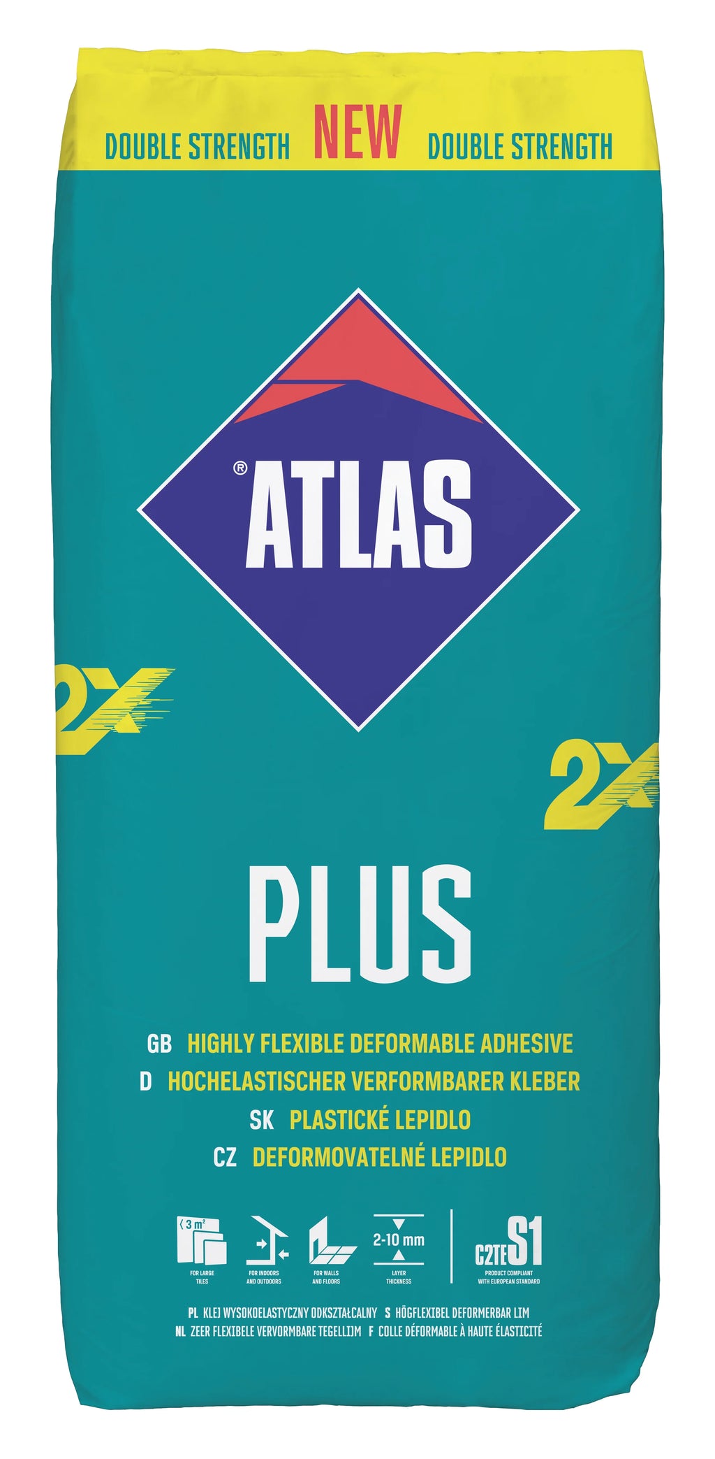 Receptura nowego kleju ATLAS PLUS wykorzystuje TECHNOLOGIĘ POLIMERÓW ATLAS. Dzięki wysokiej zawartości związków polimerowych, klej cementowy uzyskuje unikalne właściwości, czyniąc go produktem o najwyższych parametrach technicznych i użytkowych, gwarantującym długotrwałą trwałość.