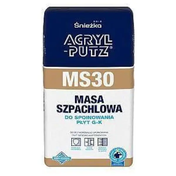 Highly flexible putty containing cellulose fibres and plastic dispersions reducing loads as a result of difference in material joints. The final surface is smooth and ready for painting and wallpapering.