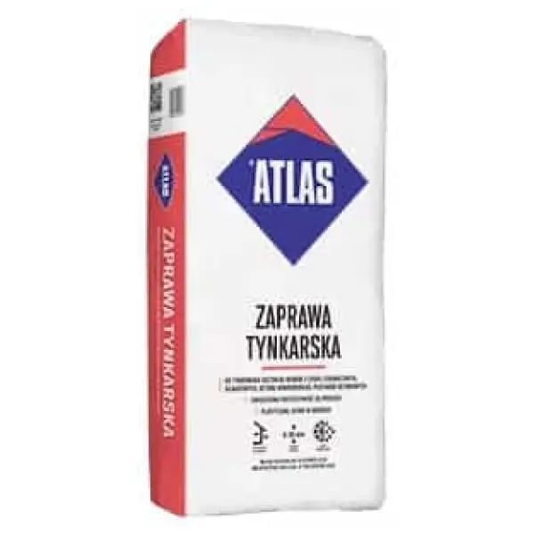 Atlas Zaprawa Tynkarska Maszynowa is a professional-grade cement-lime render mortar designed for machine plastering of walls and ceilings. It is ideal for use on various mineral surfaces such as brickwork, concrete, cement blocks, and traditional plasters.