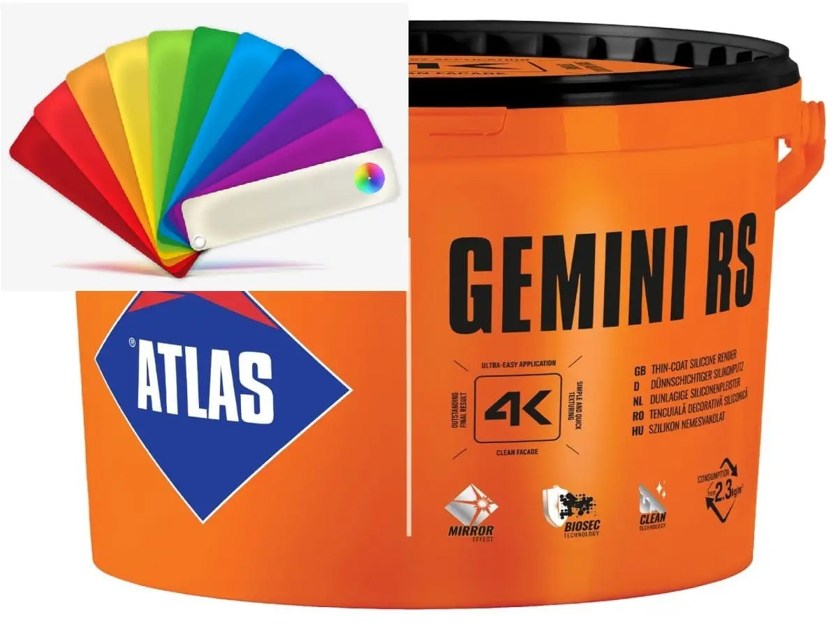 Atlas Gemini RS Silicone Render – Self-Cleaning Thin-Coat Finish (25 kg, 400 Colours)