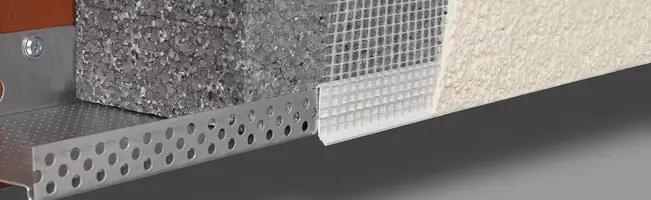 This bead clips on to the starter track and the the fibreglass mesh wing runs up the front of the insulation where basecoat adhesive is used to tie the different components together.