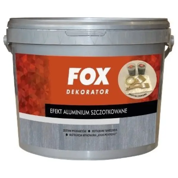 BRUSHED ALUMINIUM EFFECT Fox Decorator can be applied to any type of substrate carrier after appropriate preparation, eg. On plaster, concrete, stone and gypsum and wood surfaces.