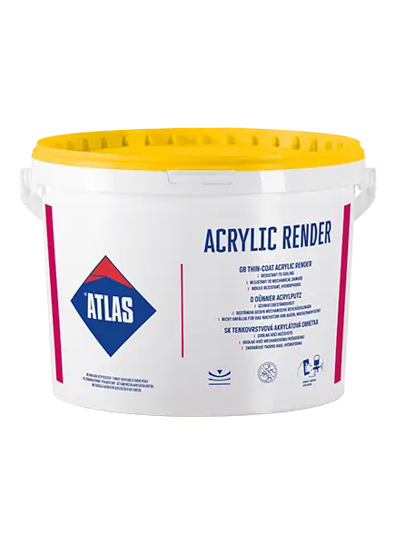 ATLAS ACRYLIC RENDER is a thin-coat render for application of finishing coats with decorative spotted texture.