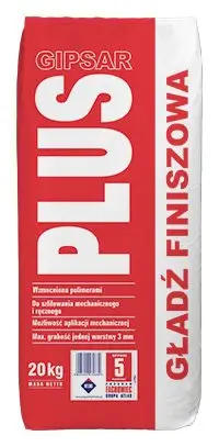 - Improved hardness – strength of gypsum intergranular bonds was improved owing to the addition of modified polymers – redispersible powder resins – therefore PLUS GIPSAR forms uniform, firm and smooth surface for further painting and wallpapering.